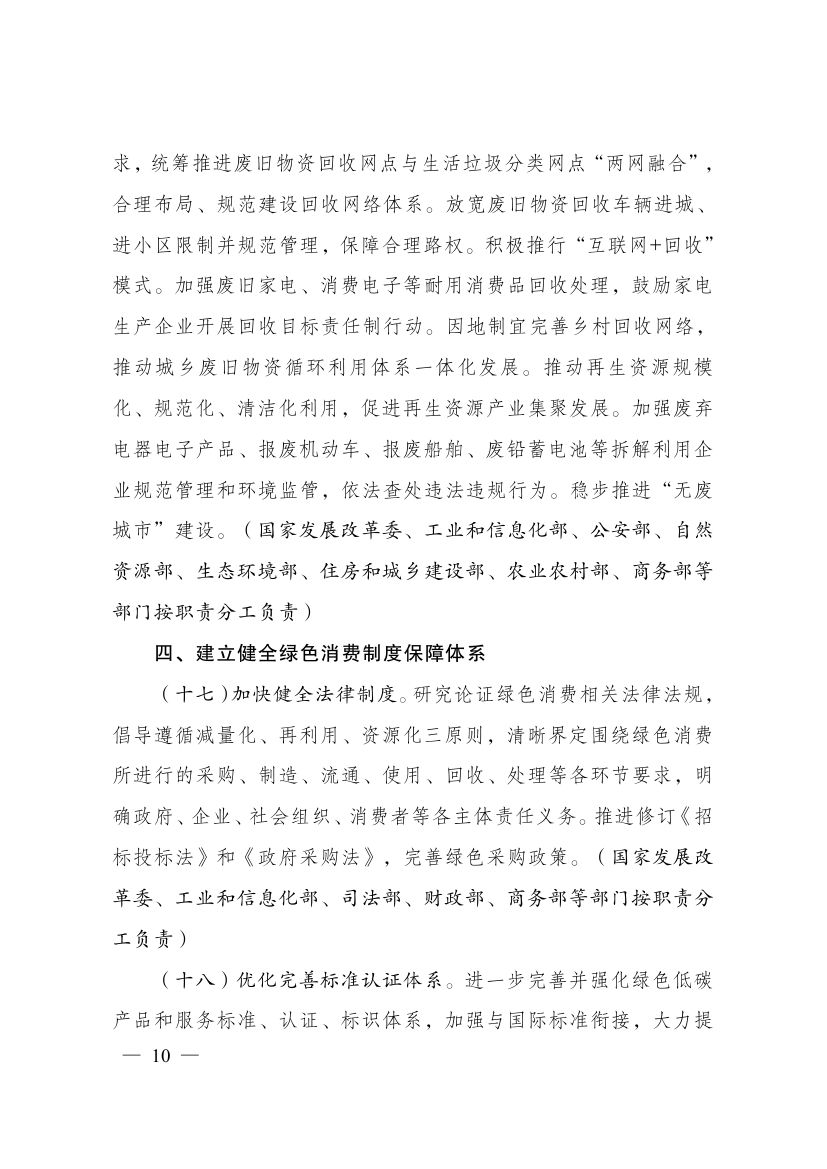 國(guó)家發(fā)展改革委等部門關(guān)于印發(fā)《促進(jìn)綠色消費(fèi)實(shí)施方案》的通知